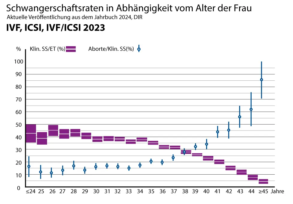 Aktuelle Erfolgsdaten zu IVF und ICSI finden Sie im Deutschen IVF-Register (D·I·R). Dort erhalten Sie einen transparenten Überblick über die statistischen Chancen je nach Altersgruppe und Behandlungsart.